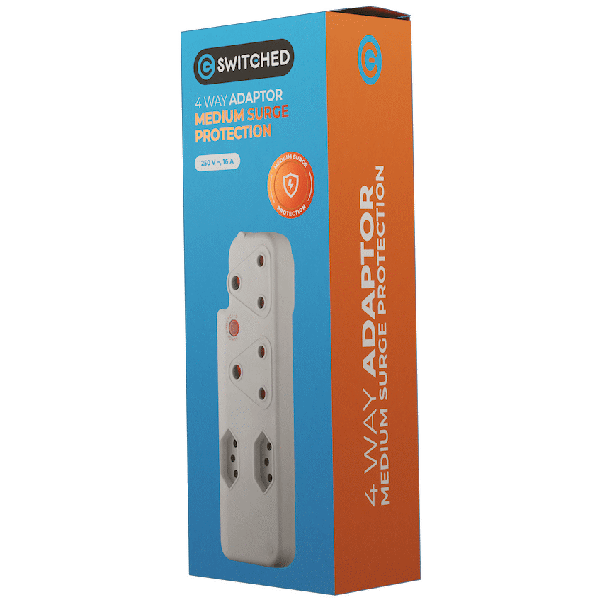 Stay powered and protected with the Switched 4 Way Medium Surge Adaptor, your trusted 4 way surge protector for home or office use. Designed to handle the demands of South African electronics, this compact solution ensures your valuable devices are shielded from harmful power surges-offering peace of mind and seamless everyday functionality.Built with medium surge protection and dual 16A SANS 164-2 sockets, it’s ideal for safely connecting TVs, routers, kitchen appliances and more. Its clean white design fits effortlessly into any environment, while built-in safety shutters add an extra layer of protection, especially for households with children.Whether you’re upgrading your home setup or need a practical option for the office, this Switched surge adaptor delivers both performance and safety in a single, easy-to-use unit.