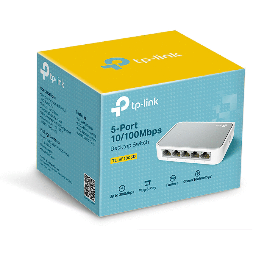 The TP-Link TL-SF1005D is a simple, cost-effective solution for expanding your wired network at home or in the office. With 5 Fast Ethernet ports (10/100Mbps), it provides stable and reliable connections for devices such as PCs, printers, smart TVs, and IP cameras.Featuring plug-and-play installation, there’s no need for additional configuration-just connect your devices and enjoy instant network expansion. The auto-negotiation and auto-MDI/MDIX features eliminate the need for crossover cables, making setup quick and hassle-free.Designed with energy-efficient technology, the TL-SF1005D reduces power consumption, making it an eco-friendly choice for everyday networking. Its compact desktop design ensures it fits seamlessly into any space.